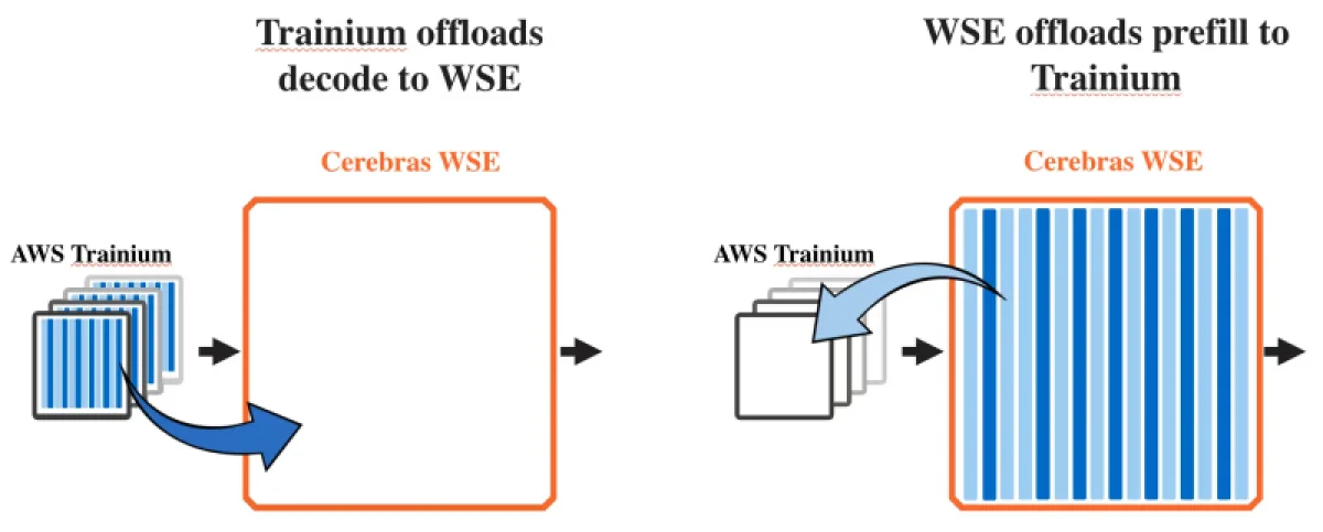 Обычно функции предварительного заполнения и декодирования реализуются в рамках одного процессора. Однако в дезагрегированной системе AWS этап предзаполнения обеспечивается чипами Trainium, а за декодирование отвечает платформа Cerebras CS-3, построенная на основе WSE-3.