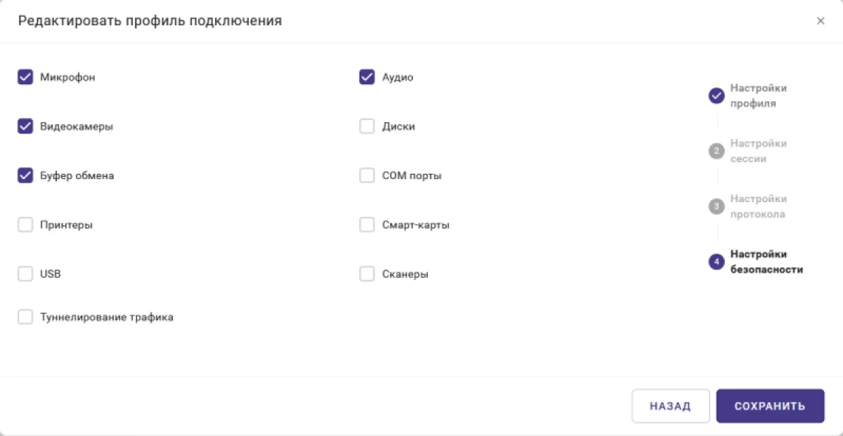 Расширены возможности передачи периферийных устройств на виртуальные рабочие места через протокол RDP/xRDP с использованием встроенных средств платформы: добавлена поддержка смарт-карт Рутокен, принтеров и веб-камер для соединений между Windows и Linux, Linux и Linux, а также Linux и Windows.