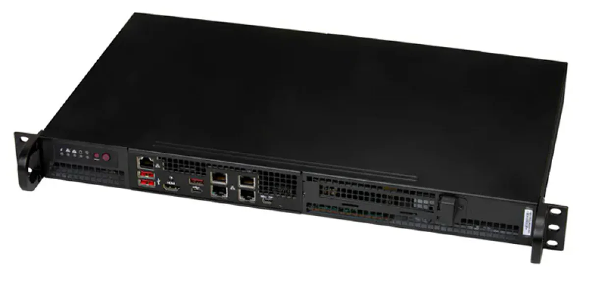 Сервер AS-1116R-FN4 выполнен в неглубоком корпусе высотой 1U с габаритами 43 × 437 × 249 мм. Данная система также поддерживает один процессор в разъёме Socket AM5 (LGA-1718) и до 192 ГБ памяти DDR5-5600. В зависимости от конфигурации возможна установка либо двух накопителей формата SFF, либо одного диска LFF. Кроме того, имеются слоты для SSD типоразмеров M.2 2280 и M.2 22110 (с интерфейсом PCIe 5.0 x4), а также разъём PCIe 5.0 x16. В перечень интерфейсов входят порт USB 3.1 Type-C, два разъёма USB 3.1 Type-A, порт USB 3.0 Type-A, а также видеовыходы HDMI 2.1 и Mini-DP. Сетевое оснащение представлено четырьмя портами 1GbE (на контроллере Intel I350-AM4) и выделенным портом управления 1GbE (ASPEED AST2600).