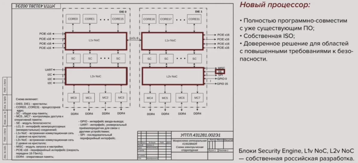 На текущем этапе «Трамплин Электроникс» завершила разработку топологии и низкоскоростных ядер. Ведутся работы над модулем безопасности, а уже в первом квартале будущего года компания намерена отправить партнёрам первую партию инженерных образцов новых чипов. Производство процессоров будет организовано на «дружественной фабрике, не попадающей под санкционные ограничения». Первоначально корпусировка будет осуществляться в Китае, но в перспективе этот этап может быть перенесён на территорию Российской Федерации. Параллельно компания работает над референсными дизайнами плат, в первую очередь для серверных решений, систем хранения данных и аналогичного оборудования, которое и является целевой областью применения первых чипов.