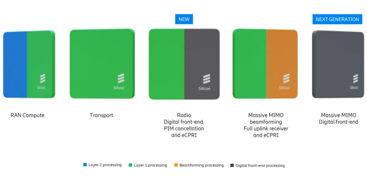 Портфель решений Ericsson для RAN строится на двух основных архитектурных подходах. Основная часть базируется на ASIC, которые разрабатываются как самостоятельно, так и совместно с Intel. Кроме того, в него входит Cloud RAN, сочетающая программный стек Ericsson с процессорами Intel Xeon EE. Несмотря на ожидания рынка, что виртуализация позволит полностью отделить программное обеспечение от «железа», Intel остаётся единственным поставщиком микросхем для Ericsson в рамках масштабных внедрений, что несёт в себе определённые риски.