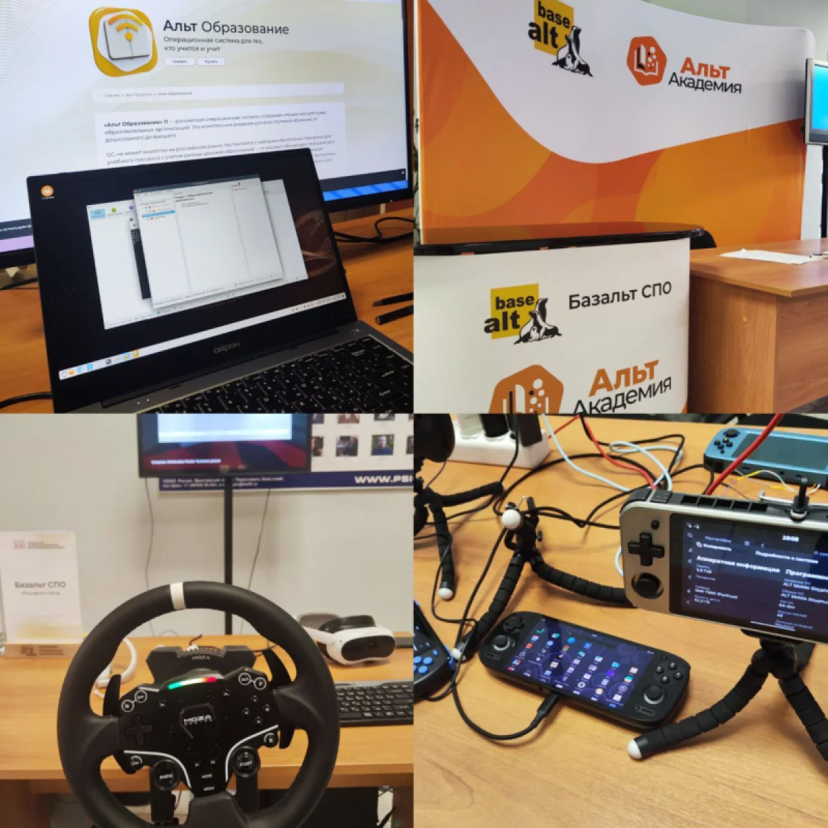 В паузах между выступлениями гости могли испытать VR-игры, запущенные через PortProton, посмотреть ALT Mobile на различных мобильных гаджетах и смартфонах, изучить платформу ALT Atomic, а также обновлённую редакцию ОС «Альт Рабочая станция» с окружением GNOME.